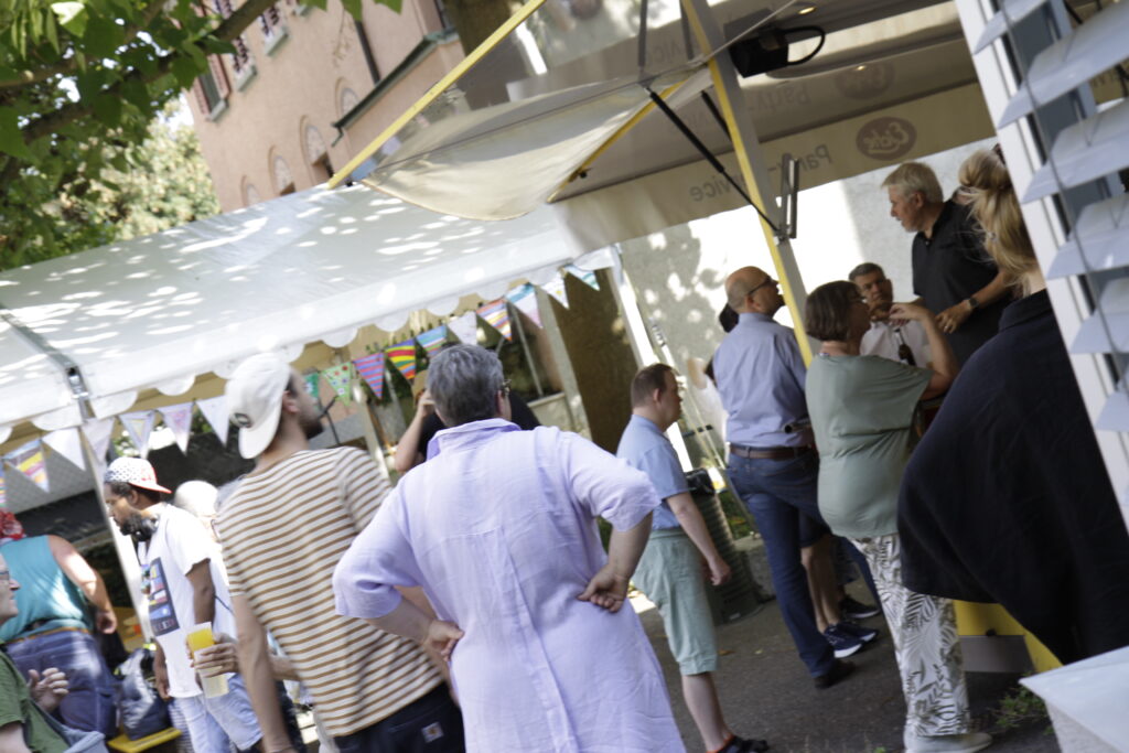Für das leibliche Wohl war bestens gesorgt: Ein Glace-Wagen sorgte zwischendurch für erfrischende Abkühlung, an der Bar gab es eine grosse Auswahl an Softdrinks und Bier. – ausserdem war auch die Saftbar sehr beliebt, an der diverse Mocktails zur Auswahl standen. Besonders beliebt waren die feinen Würste vom Grill und die grosse Auswahl an Salaten – da war für alle Geschmäcker etwas dabei. Nach der Eröffnungsansprache von Nicole Schwarzenbach, der Geschäftsleiterin des WohnWerk, wuchs die Schlange am Grillstand und das Fest nahm richtig Fahrt auf.