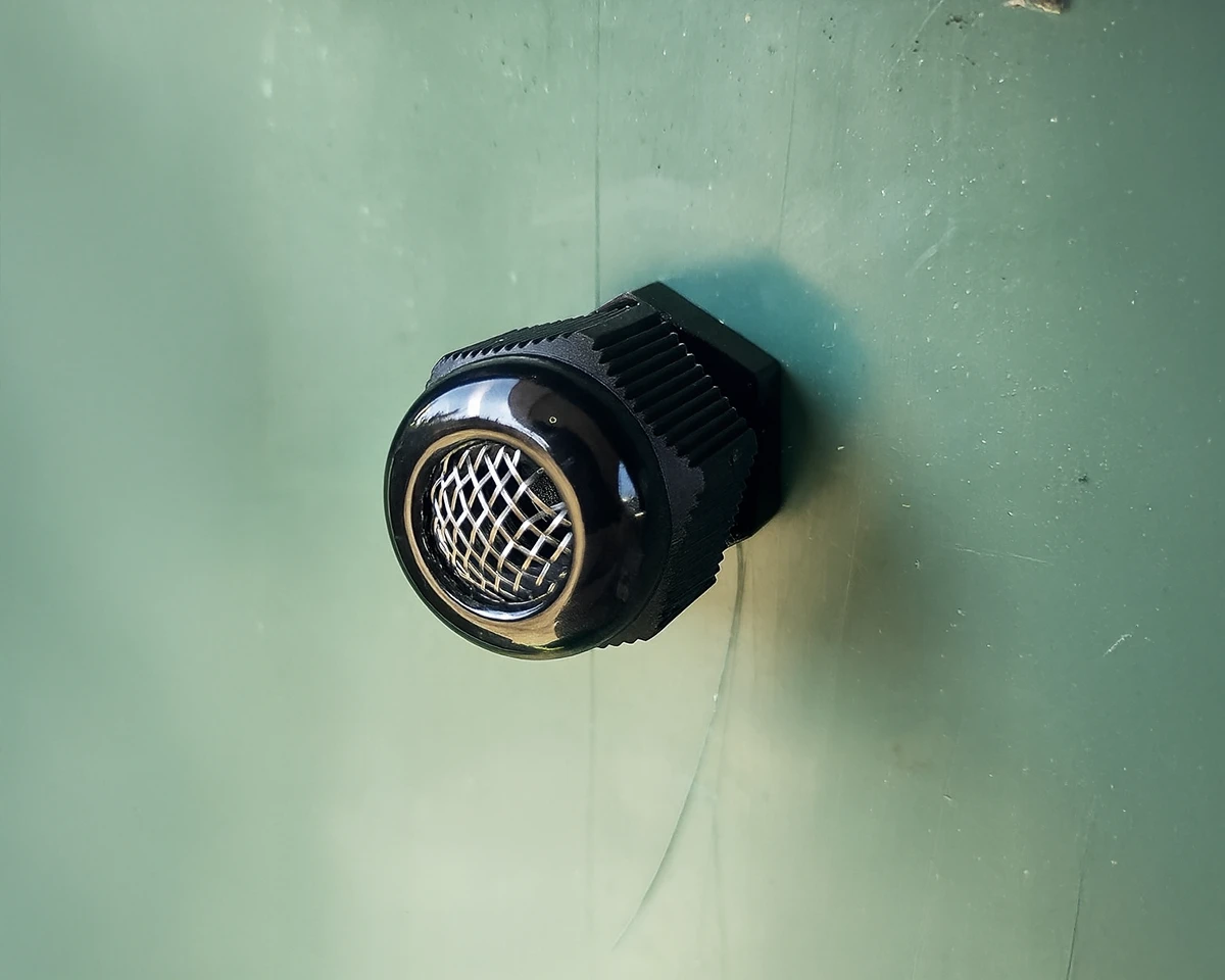 Damit das Wasser in der Regentonne nicht bis zum Gitter aufläuft, empfehlen wir, etwa 5cm unter dem Rand ein 16 mm grosses Loch zu bohren. Montieren Sie den Ablauf mit der Gitteröffnung nach aussen. So kann verhindert werden, dass die Mücken via Überlauf ins Fass eindringen.