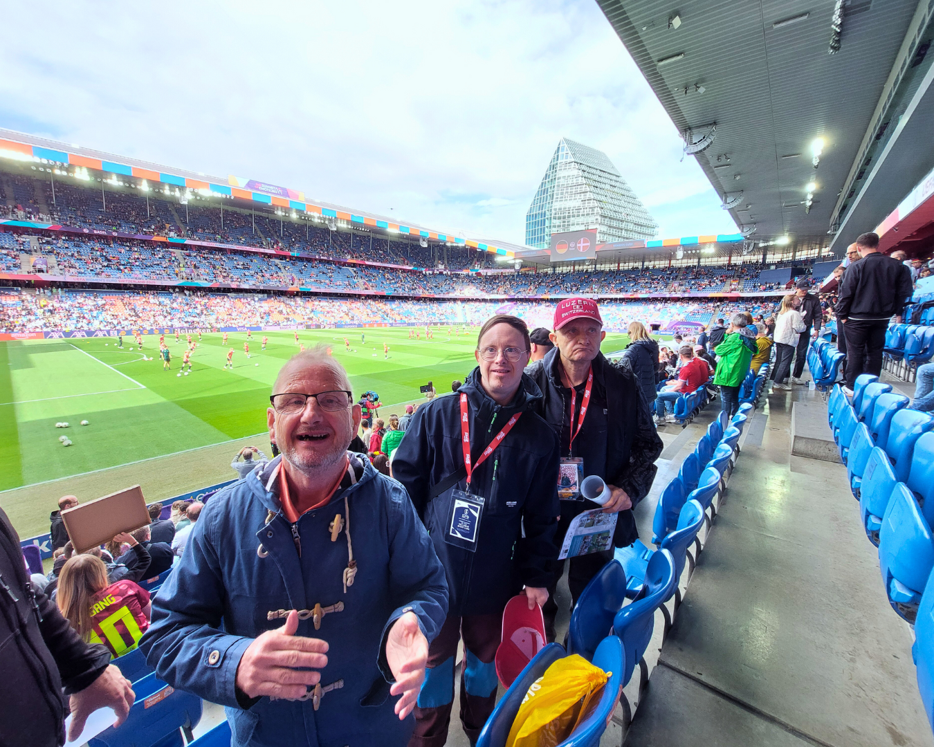 Die Begeisterung für die UEFA Women’s Euro ist auch bei der Stiftung WohnWerk spürbar: Am 8. Juli besuchten drei Bewohnende das Spiel Dänemark gegen Deutschland im Basler Joggeli. Gemeinsam mit tausenden anderen Fans erlebten sie einen mitreissenden Fussballabend im Stadion – die Stimmung war grossartig, und es wurde fleissig mitgefiebert.